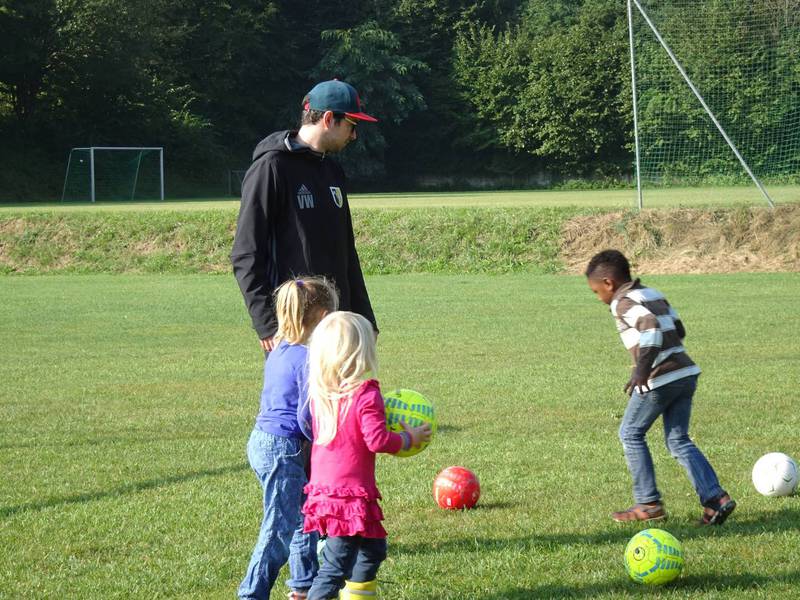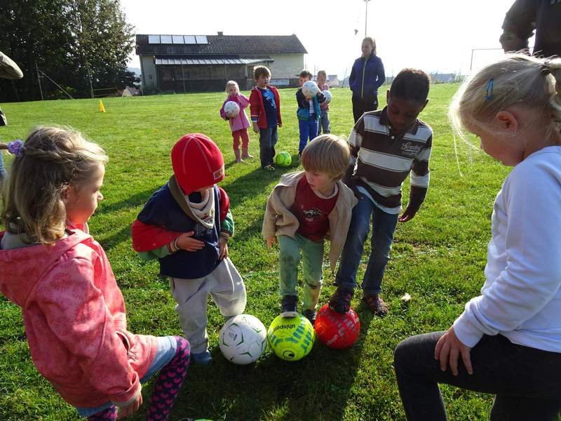 Die Vorschulkinder des Egglkofener Kindergartens starteten ihren ersten Ausflug des Jahres zum Sportplatz. Hier warteten bereits die Jugendleiterin des FC Egglkofen Katrin Ritthaler und ihre Trainer Vinzenz Wurstbauer und Katharina Seidl auf die Kinder. Vinzenz hat für die 13 Jungs und Mädels verschiedene Übungen mit dem Ball im Rahmen des Themas „Dschungel“ vorbereitet. Ob über ein Seil balancieren, durch ein Labyrinth dribbeln bis hin zum Torschuss meisterten die Kinder die Übungen mit viel Engagement. Der FCE freut sich, wenn wir den ein oder anderen immer freitags von 17:30 bis 18:30 Uhr zum Bambini Training begrüßen dürfen.