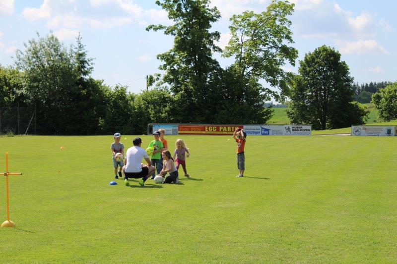 Am Freitag, den 26.05.2017, lud FCE-Jugendleiterin Katrin Ritthaler die Kinder des Egglkofener Kindergartens zum Probetraining am FCE-Sportgelände ein. Insgesamt folgten 11 Kinder bei sommerlicher Temperatur der Einladung und probierten sich zumeist zum ersten Mal am runden Leder aus. Das Trainerteam um Katrin Ritthaler dachte sich dabei unterschiedlichste Übungen aus, bei denen im Vordergrund der Umgang mit dem Fußball stand. So konnten sich die Mädchen und Jungen u.a. an Ballbehandlung, Dribbling und Torschuss probieren. Zum Schluss wurden die Kids in zwei Teams aufgeteilt und konnten sich in einem Abschlussspiel gegeneinander messen.