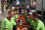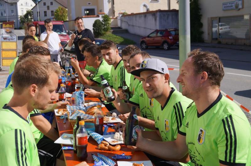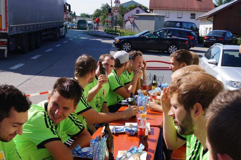 Nach dem gemeinsamen Fototermin lies es sich die Familie Wagner nicht nehmen die gesamte Mannschaft noch zu einem Weißwurstfrühstück vor dem Dorfladen einzuladen.