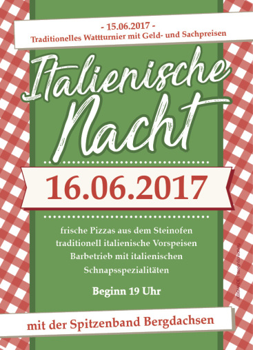 Am Freitag wurde eine italienische Nacht veranstaltet. Auf dieses Event des Jubiläums hatten sich der extra gegründete Festausschuss und die Vorstandschaft besonders vorbereitet. So wurden den Gästen selbst gebackene Pizzen oder ein Brotzeitteller serviert. Da der Andrang so groß war, musste die Küche schon nach kurzer Zeit vermelden, dass alle Pizzen verkauft waren. Jedoch hatte der Festausschuss noch die Brotzeitteller oder Desserts in der Hinterhand, die den einen oder anderen vor dem Verhungern rettete. Auch die Weinspezialitäten die eigens in einer Weinprobe ausgesucht wurden, fanden guten Anklang und so entwickelte sich unter den Gästen eine feuchtfröhliche Stimmung, die sich durch die gut aufspielenden „Bergdachsen“ noch verstärkte. Wem dann das Sitzen zu langweilig wurde, der konnte sich auf ein Glas Prosecco mit Erdbeeren an der Bar einfinden. Hier wurden auch härtere Getränke ausgeschenkt, da der Prosecco eher für die weiblichen Gäste gedacht war und das Angebot auch die Männer an die Bar locken sollte. So verlagerte sich das Fest langsam aber sicher an die Bar. Für die Tanzwütigen unter den Gästen war eine kleine Tanzfläche direkt vor der Band freigelassen worden, die immer gut besucht war. Das Fest dauerte noch bis in die frühen Morgenstunden und bescherte sicherlich den einen oder anderen gehörige Kopfschmerzen am nächsten Tag.