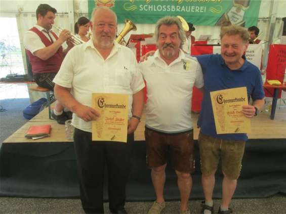 Vorstand Reinhold Weber erfüllte dann noch eine ehrenhafte Pflicht. Den beiden neuernannten Ehrenmitgliedern Josef Ziegler und Erich Huber händigte er unter dem Beifall der Besucher im Zelt die Ernennungsurkunden dazu aus. Josef Ziegler hatte neben anderen Verdiensten viele Jahre den Verein als Vorstand geführt. Die Ehrungsgründe bei Huber waren die vielen Jahre, die er als Jugendleiter dem Verein gewidmet hatte. nz