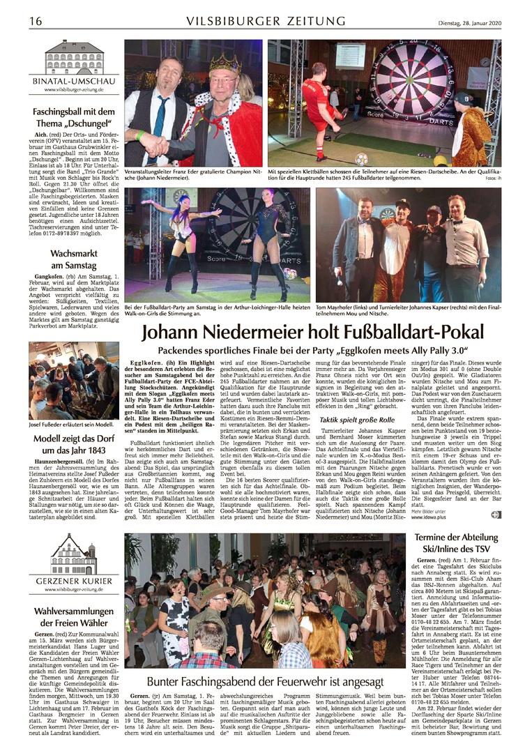 Am 25.01.2020 geht unsere Fußballdartparty in die dritte Runde. Ab 17:00 Uhr ist es für jeden möglich sich für die Endrunde zu qualifizieren. Keine Anmeldung notwendig!