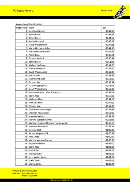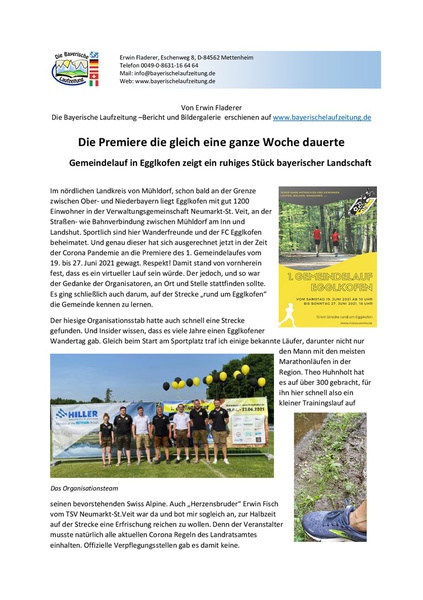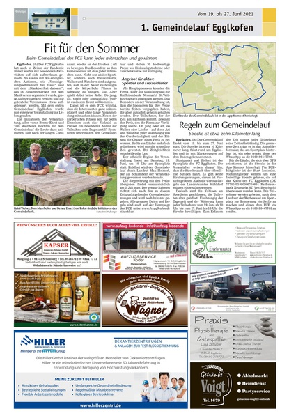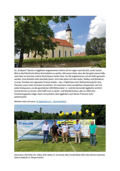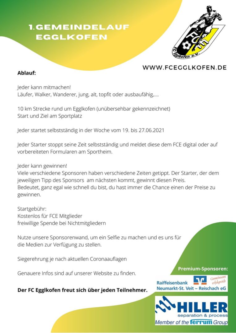 Vom 19.06. bis 27.06.2021 findet in Egglkofen der erste Gemeindelauf statt.