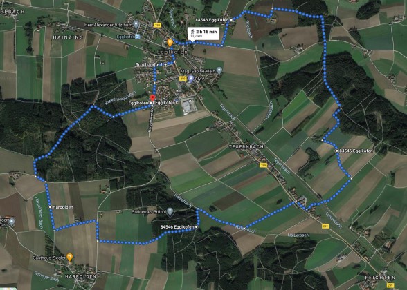 Wir haben eine ca. 10 km (10,75km) lange Strecke rund um Egglkofen ausgesteckt, die jeder selbstständig absolviert.