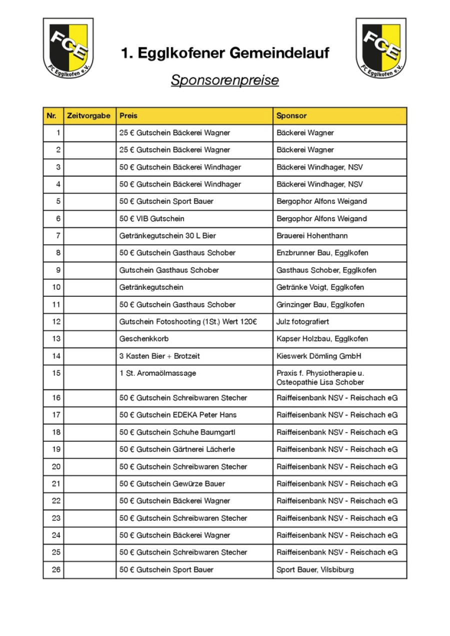 Die Preisverleihung findet am Samstag, 03. Juli um 18 Uhr am Sportplatz statt. Alle Sponsoren und Gewinner sind herzlich eingeladen.