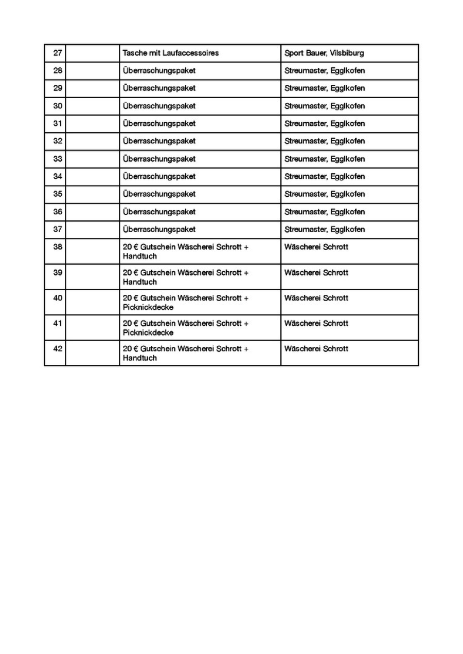 Zu gewinnen gibt es u.a. Gutscheine vom Gasthaus Schober, Bäckerei Wagner, Getränke Voigt, Schreibwaren Stecher, SPORT BAUER, Gärtnerei Lächerle, Bäckerei Windhager, Gewürze Bauer, Julz fotografiert, Wäscherei Schrott, Schuh Baumgartl, Peter Hans, u. v. m.