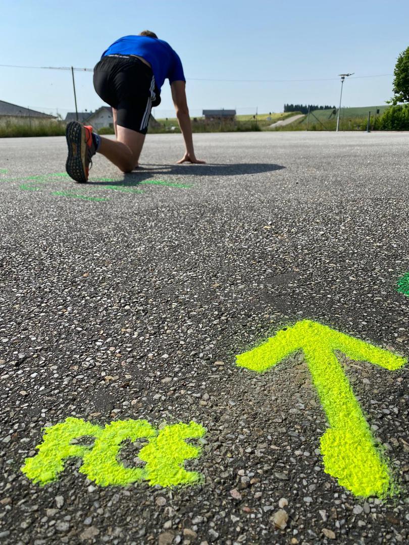 Die gemessene Zeit in das Anmeldeformular, das am Sportplatz hinterlegt ist, eintragen oder per WhatsApp an 0160 96447768 senden.